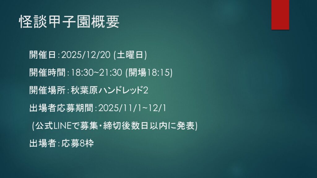 怪談甲子園2025 応募要項ページ